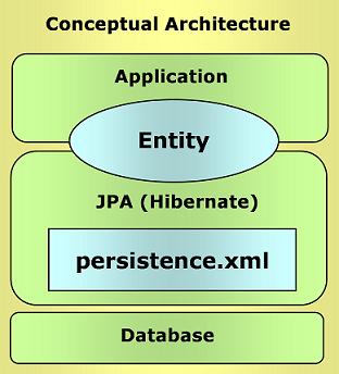 옆의 그림에서 보는것과 같이 DBMS 기반의 어플리케이션 수행을 하기 위해 필요한 주요 구성 요소는 Entity, Persistence.xml 이며, 각각은 다음과 같은 역할을 수행한다.