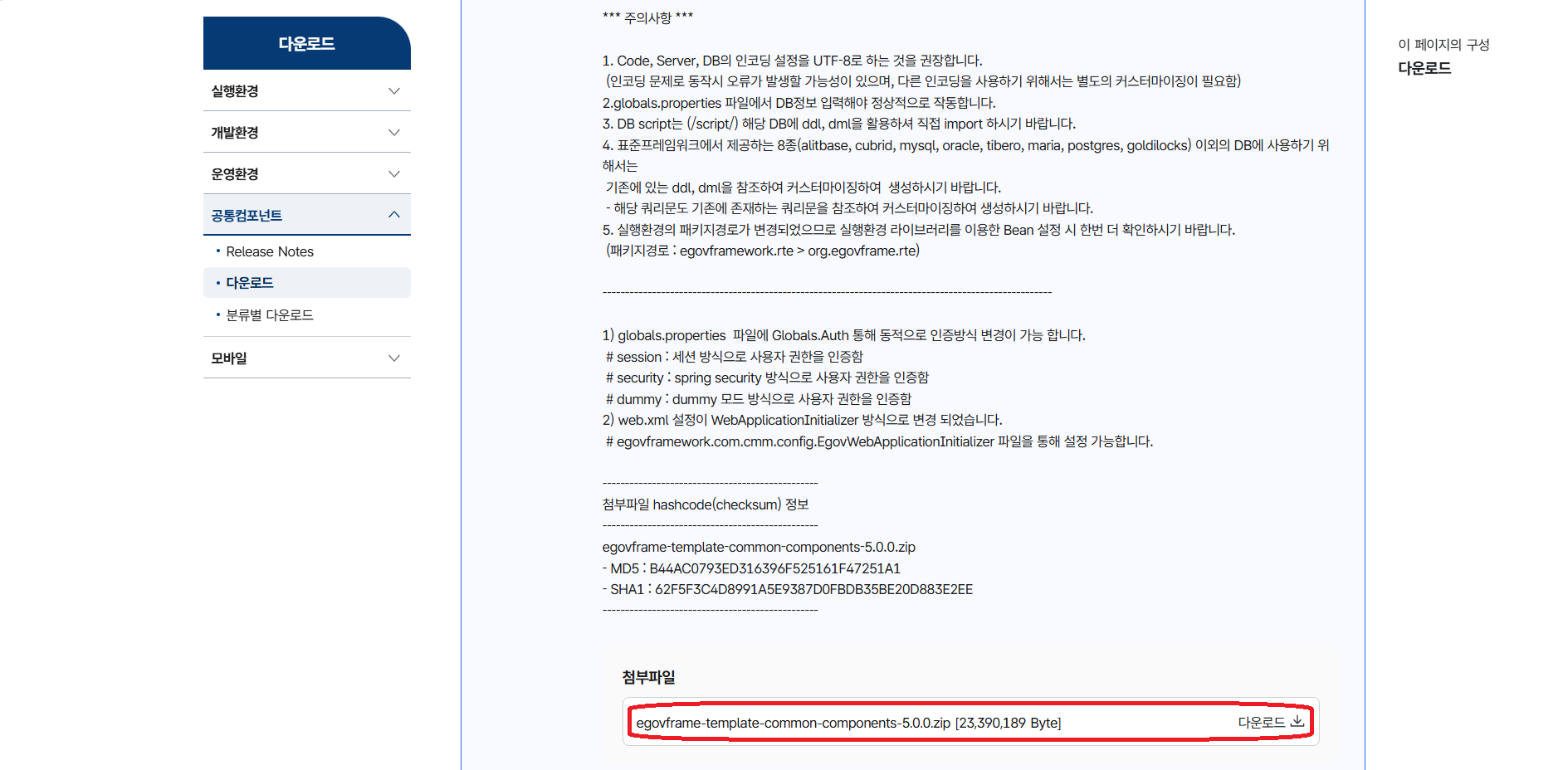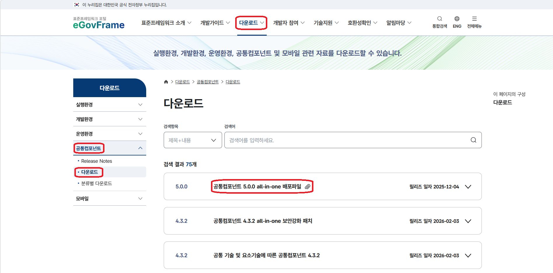 다운로드 > 공통컴포넌트 > 다운로드 > 공통컴포넌트 5.0.0 all-in-one 배포파일“을 다운로드 받는다.