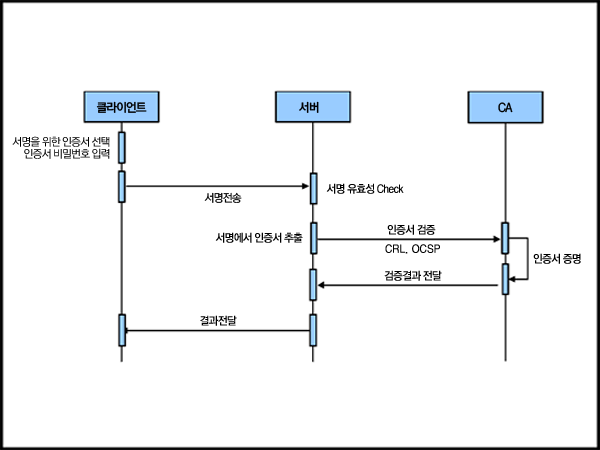 공인인증서(NPKI)를 이용한 서명 및 인증서 검증 방법제공