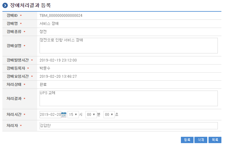 장애처리결과관리